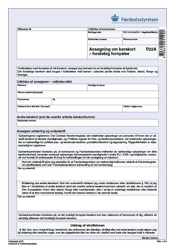 Det foreløbige kørekort skal bruges i forbindelse med kørsel i udlandet (andre lande end Finland, Island, Norge og Sverige).