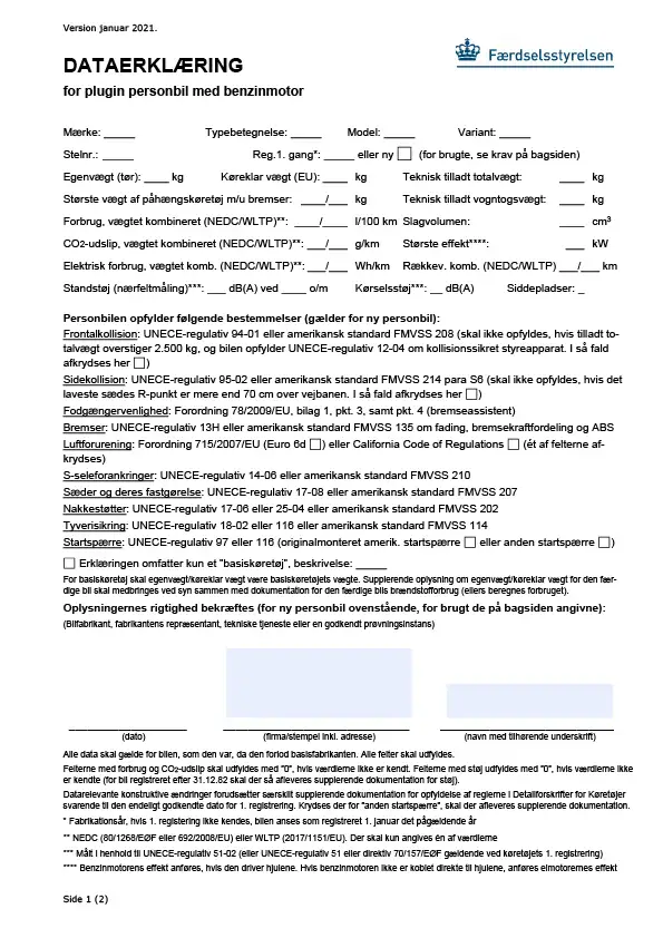 Dataerklaering for plugin personbil med benzinmotor