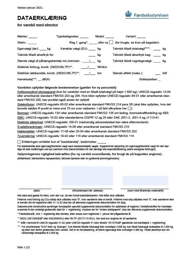 Dataerklæring for varebil med elmotor