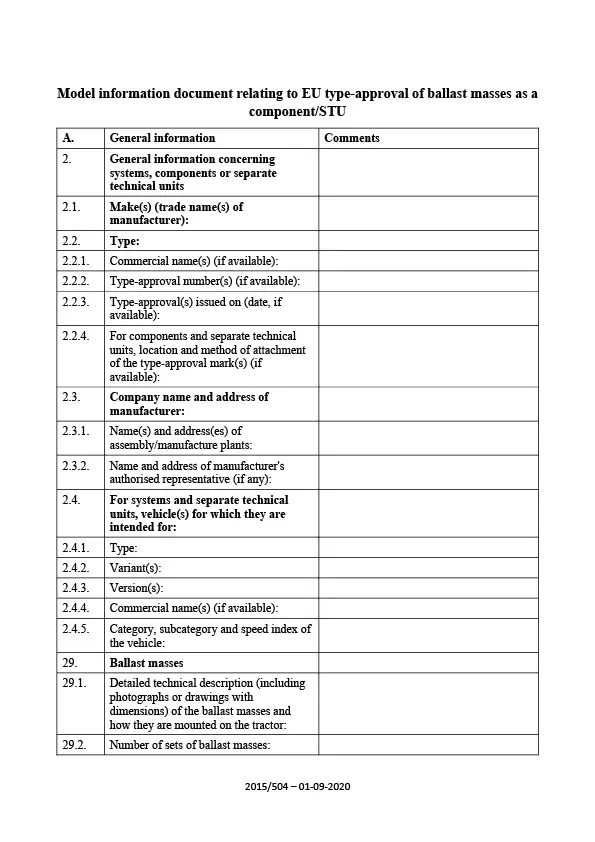 Information document - EU-type-ballast masses as a component-STU