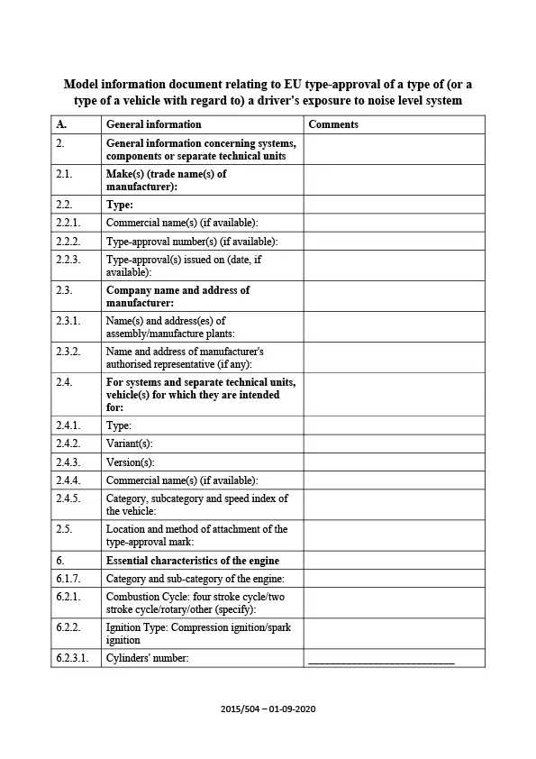 Information document - EU-type-driver's exposure to noise level system