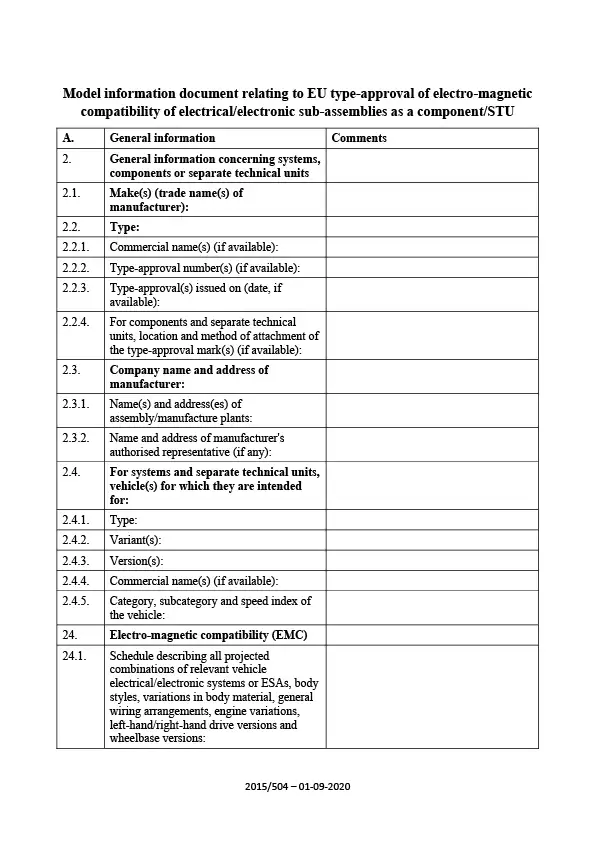 Information document - EU-type-electro-magnetic compatibility of electrical-electronic sub-assemblies as a component-STU