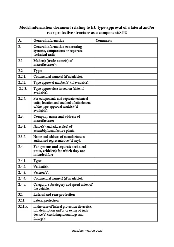 Information document - EU-type-lateral and-or rear protective structure as a component-STU