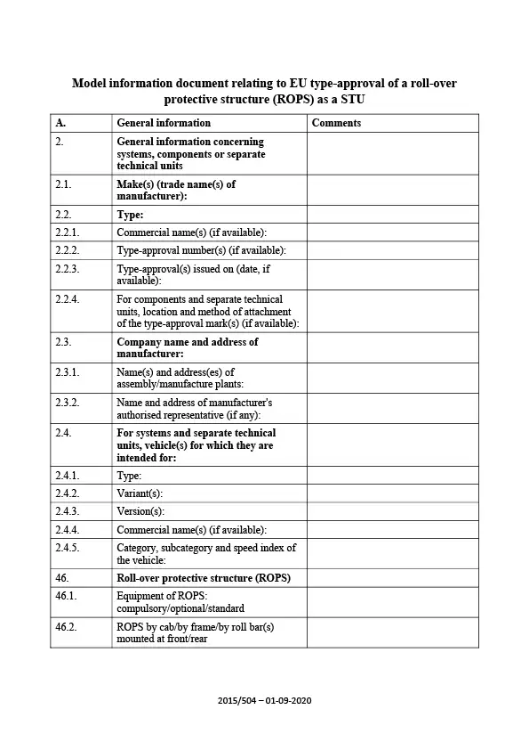 Information document - EU-type-roll-over protective structure (ROPS) as a STU