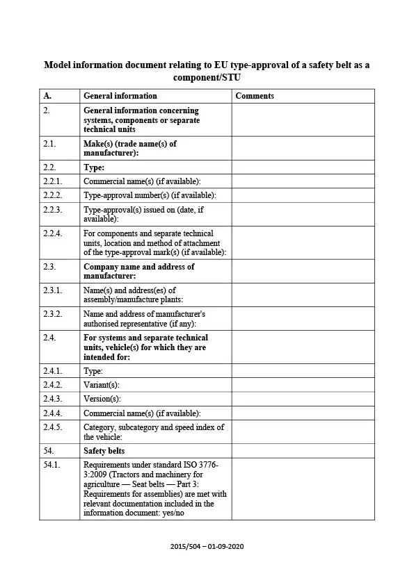 Information document - EU-type-safety belt as a component-STU