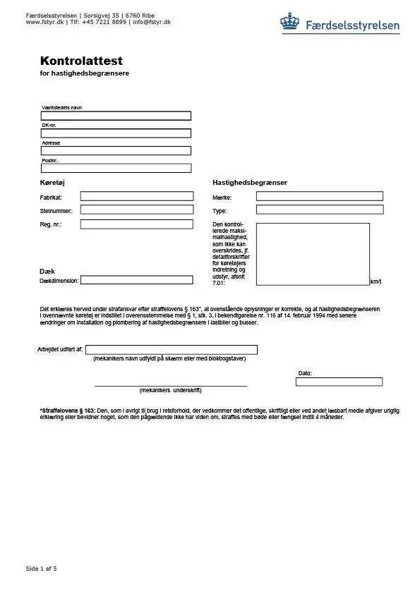 Kontrolattest for hastighedsbegrænsere