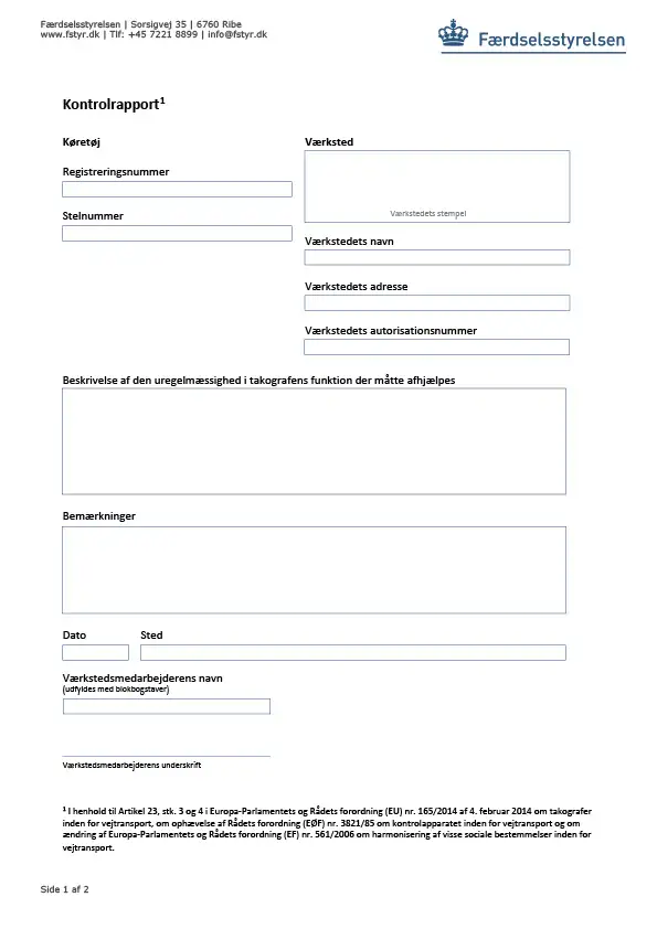 Du skal udfylde denne kontrolrapport i tilfælde af, at der er konstateret uregelmæssigheder i takografens funktion, der må afhjælpes.