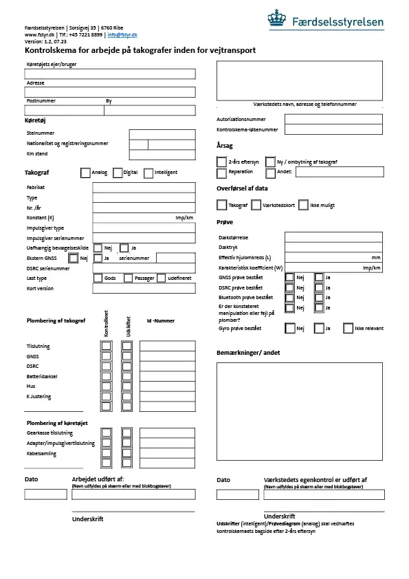 Du skal udfylde dette kontrolskema ved periodisk eftersyn af takografer.