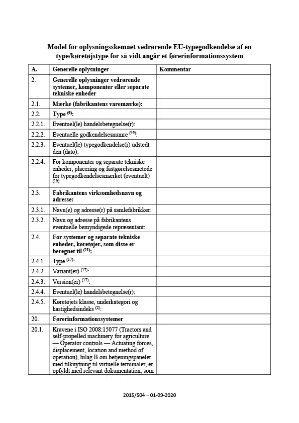 Oplysningsskema - EUtype - førerinformationssystem