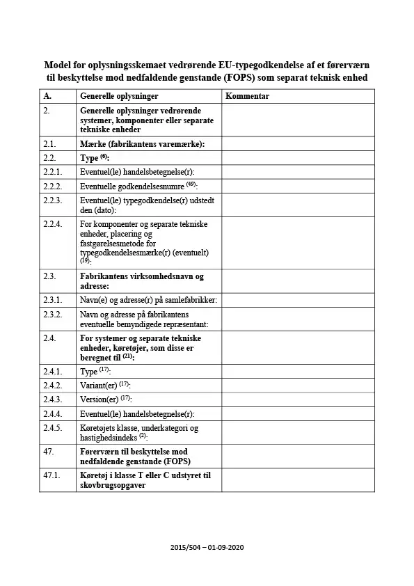 Oplysningsskema - EUtype - FOPS - separat teknisk enhed