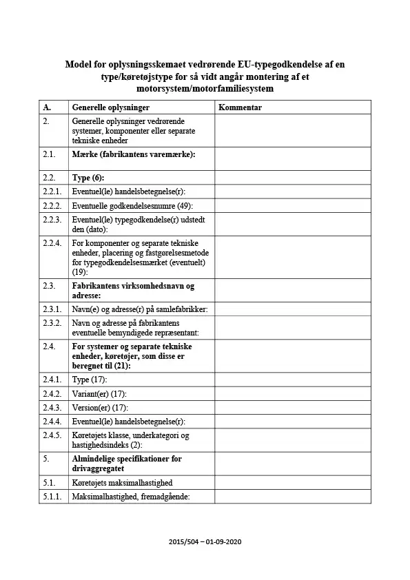 Oplysningsskema - EUtype - motorsystem - motorfamiliesystem