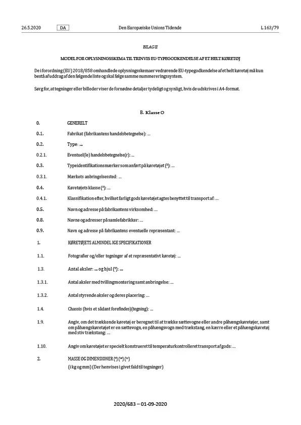 Oplysningsskema - trinvis - EUtype - helt køretøj - Klasse O