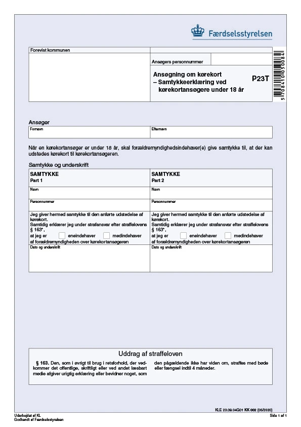 Når du ønsker at tage kørekort, inden du er fyldt 18 år, skal forældremyndighedsindehaver(e) give samtykke til, at der kan udstedes et kørekort til dig.