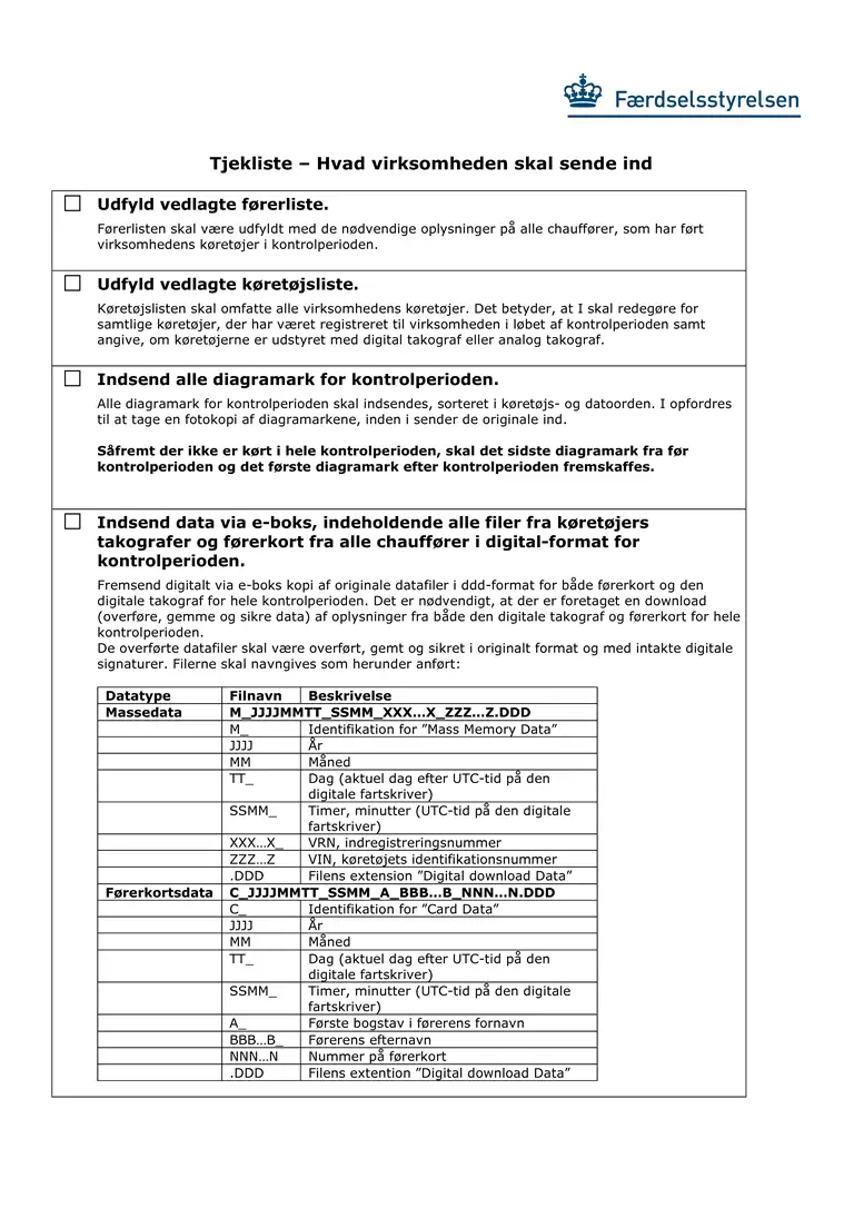 Tjekliste - Hvad virksomheden skal sende ind udfylde (taxi)