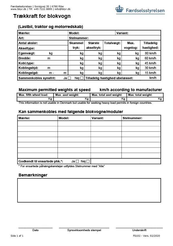 Trækkraft for blokvogn (Lastbil, traktor og motorredskab)