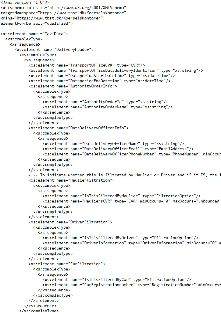 xsd-skema med eksplicitte valideringskrav (taxi)