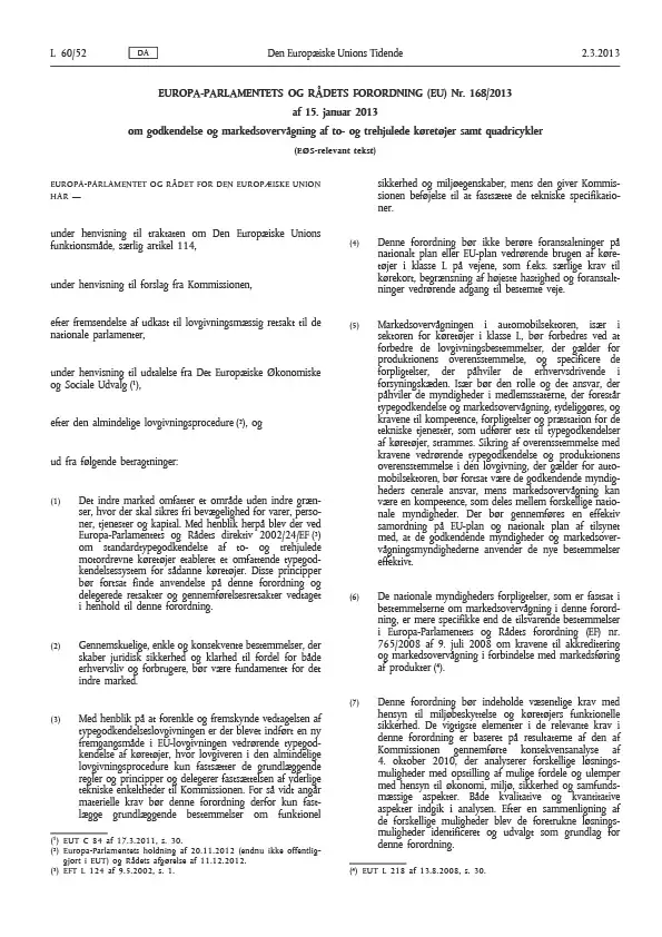 Om godkendelse og markedsovervågning af to- og trehjulede køretøjer samt quadricykler