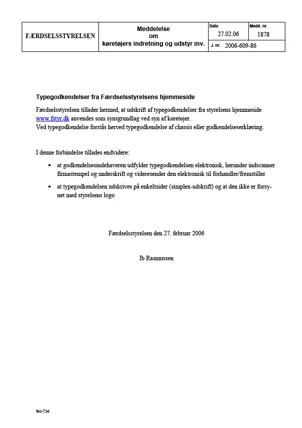 Meddelelse nr 1878 - Typegodkendelser fra Færdselsstyrelsens hjemmeside - Om køretøjers indretning og udstyr mv.