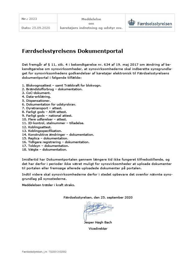 Meddelelse nr 2023 - Motorcykel til øvelseskørsel - Om køretøjers indretning og udstyr mv.