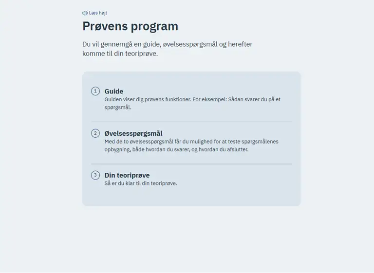 På styrelsens hjemmeside ligger den digitale teoriprøve nu online, som en test med ti prøvespørgsmål fra den digitale teoriprøve.