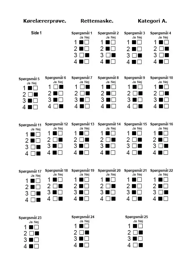 Facitliste - Forprøve til kørelæreruddannelsen - Kategori A - april 2021