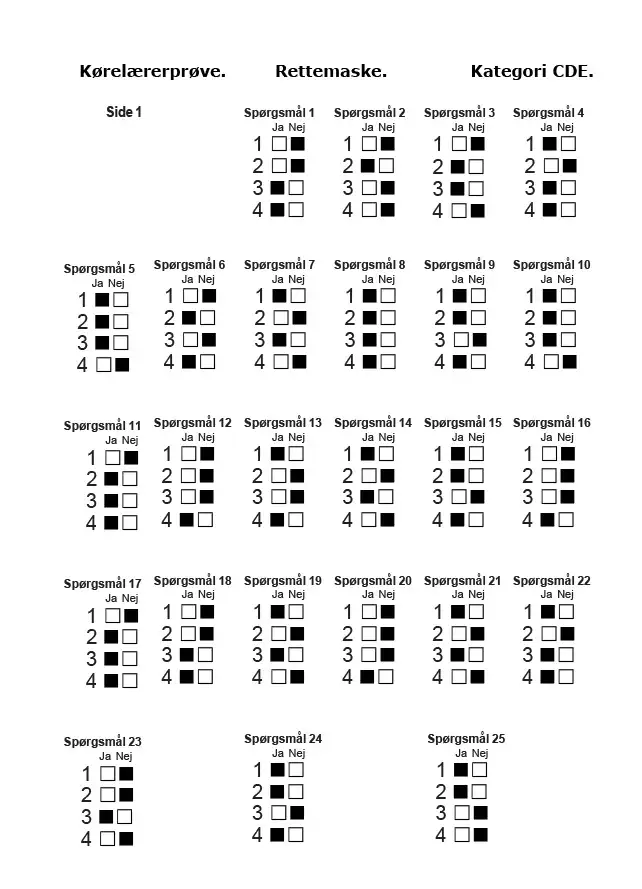 Facitliste - Forprøve til kørelæreruddannelsen - Kategori CDE - december 2022