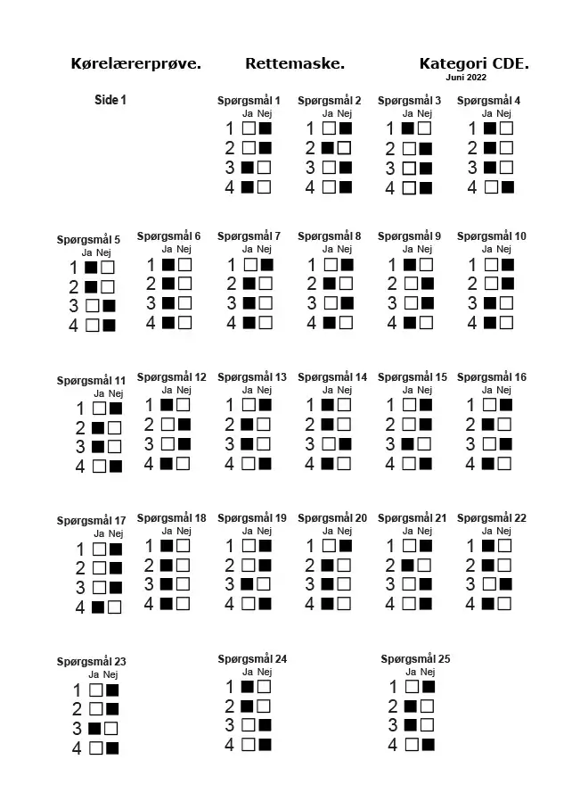 Facitliste - Forprøve til kørelæreruddannelsen - Kategori CDE - juni 2022