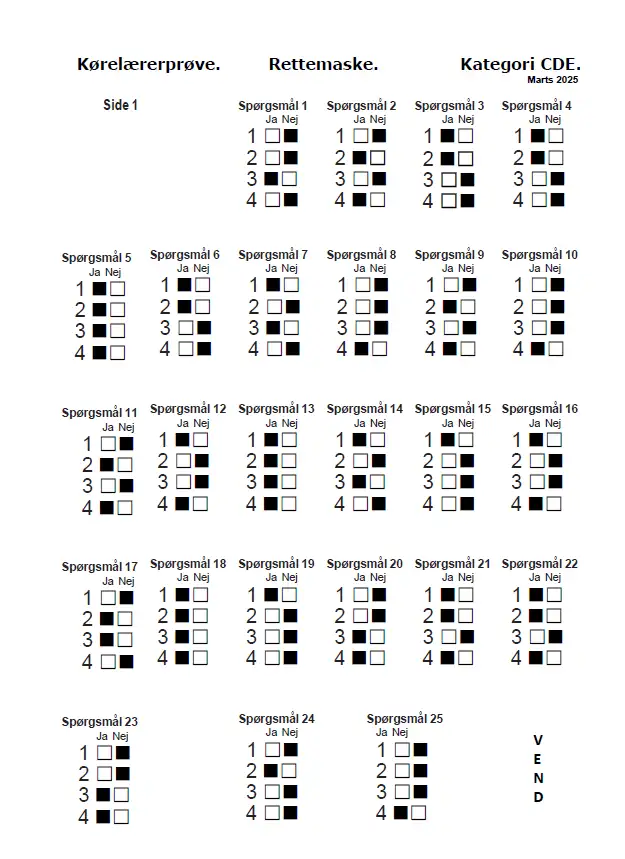 Facitliste - Forprøve til kørelæreruddannelsen - Kategori CDE - marts 2025