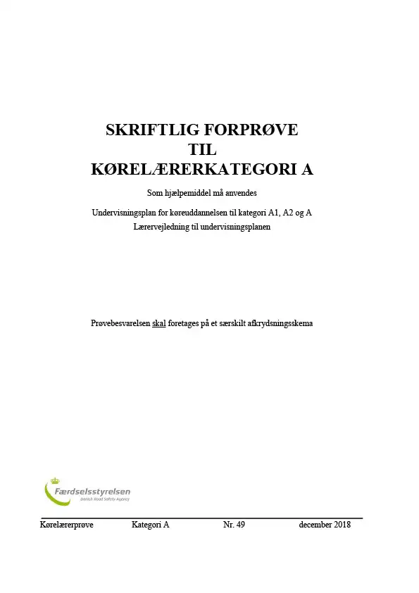 Forprøve til kørelæreruddannelsen - Kategori A - december 2018