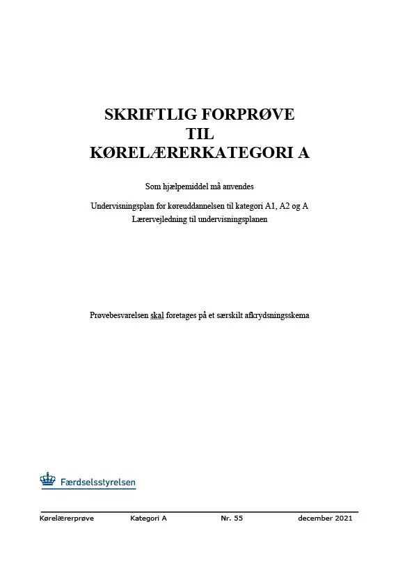 Forprøve til kørelæreruddannelsen - Kategori A - december 2021