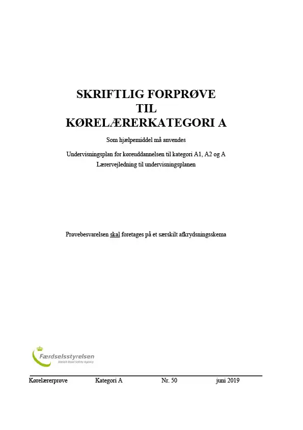 Forprøve til kørelæreruddannelsen - Kategori A - juni 2019