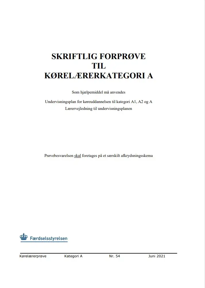 Forprøve til kørelæreruddannelsen - Kategori A - juni 2021