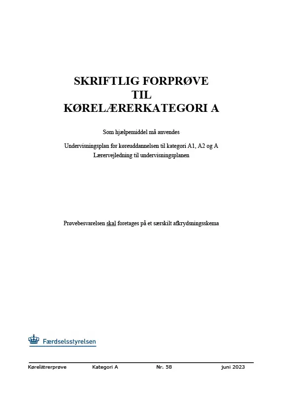 Forprøve til kørelæreruddannelsen - Kategori A - juni 2023