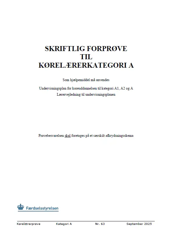 Forprøve til kørelæreruddannelsen - Kategori A - september 2025
