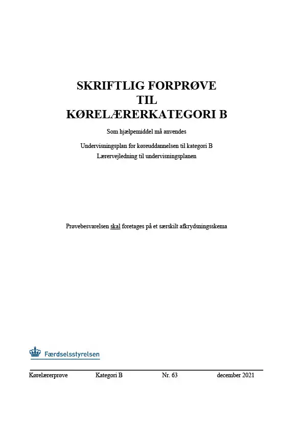 Forprøve til kørelæreruddannelsen - Kategori B - december 2021