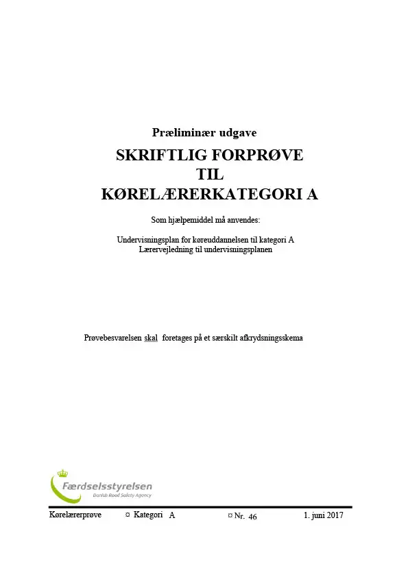 Forprøve til kørelæreruddannelsen - Kategori B - juni 2017