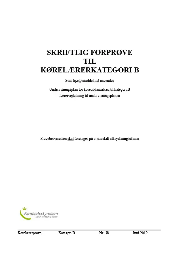 Forprøve til kørelæreruddannelsen - Kategori B - juni 2019