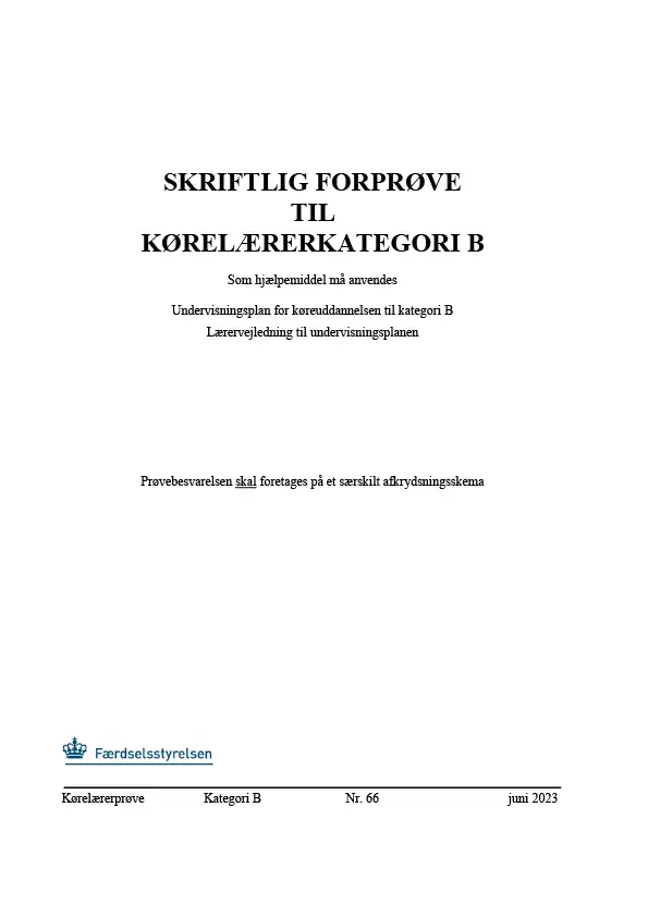 Forprøve til kørelæreruddannelsen - Kategori B - juni 2023