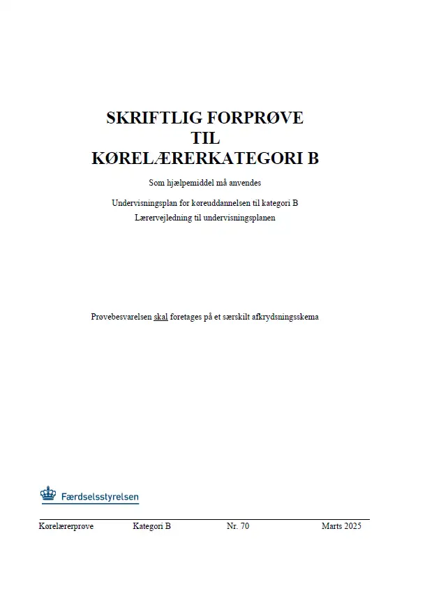 Forprøve til kørelæreruddannelsen - Kategori B - marts 2025