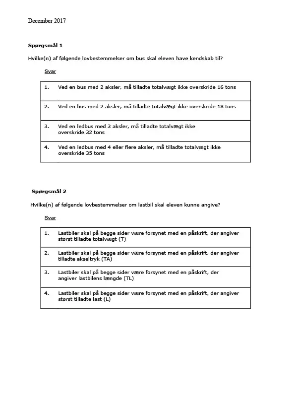 Forprøve til kørelæreruddannelsen - Kategori CDE - december 2017