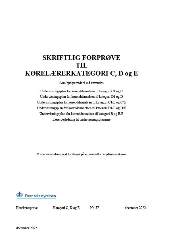 Forprøve til kørelæreruddannelsen - Kategori CDE - december 2022