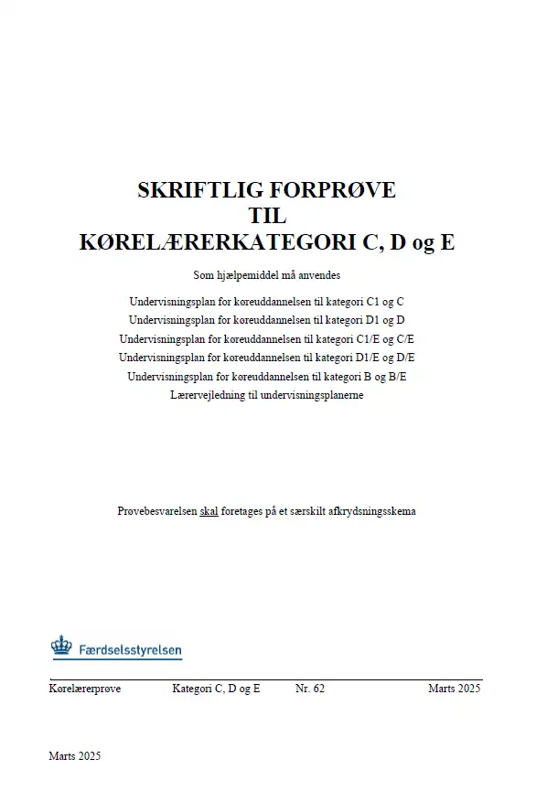 Forprøve til kørelæreruddannelsen - Kategori CDE - marts 2025