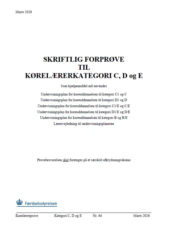 Forprøve til kørelæreruddannelsen - Kategori CDE - marts 2026