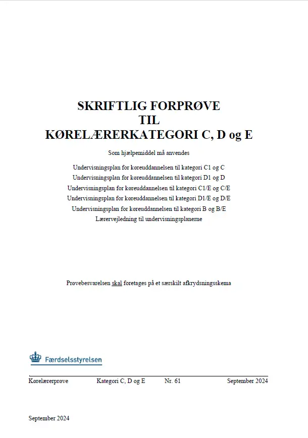 Forprøve til kørelæreruddannelsen - Kategori CDE - september 2024