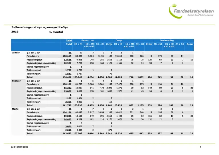 Indberettede syn for 2016