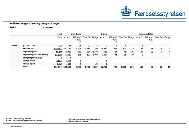 Indberettede syn for 2022 1 kvartal