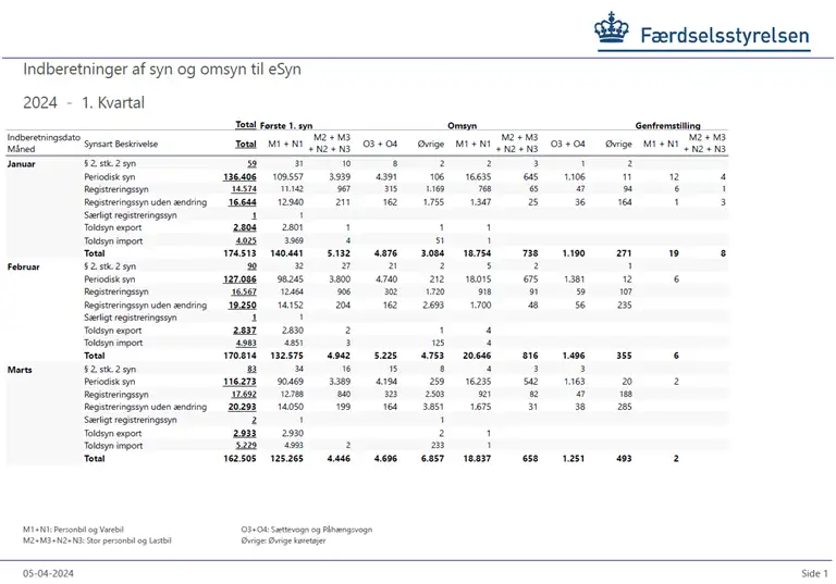 Indberettede syn for 2024 Marts