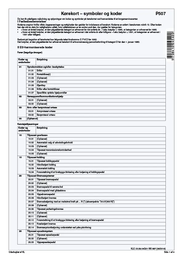 Kørekort - Symboler og koder