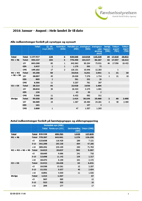 Månedsrapport over fejl- og omsynsprocenter - Hele landet - August - 2016
