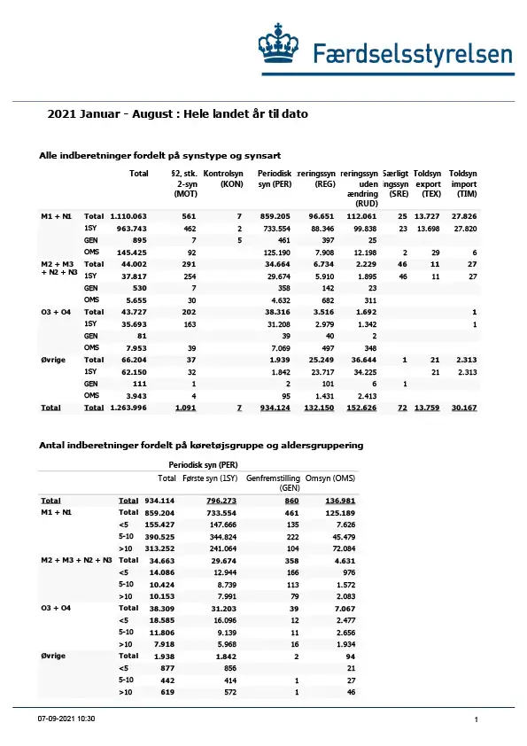 Månedsrapport over fejl- og omsynsprocenter - Hele landet - August - 2021